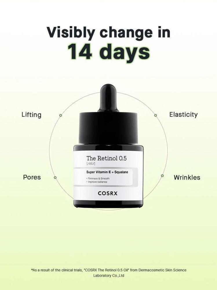 COSRX تم تركيب زيت الريتينول 0.5 بنسبة 0.5% من الريتينول النقي، وهو مصمم للمستخدمين الذين اعتادوا على الريتينول ويبحثون عن خيار أكثر فعالية لمكافحة علامات الشيخوخة. يستهدف التجاعيد العميقة والخطوط الدقيقة وفقدان مرونة الجلد والملمس واللون غير المتساويين. كما يساعد في تقليل حجم المسام وتحسين تماسك الجلد.