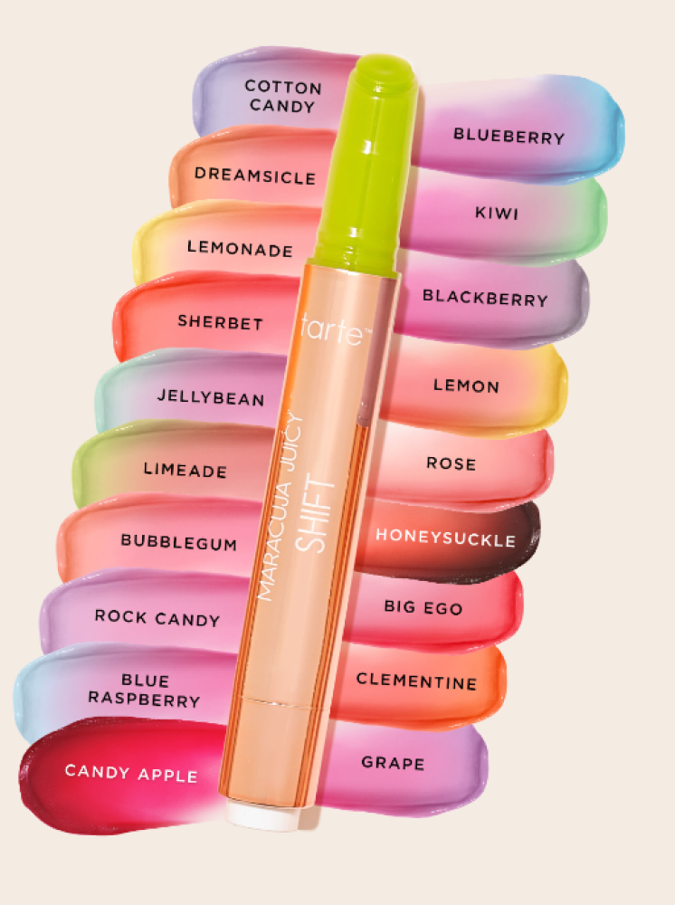 - لون دائم ولمعان زجاجي يغمر الشفاه بلون عصير دائم مع لمسة لامعة مبهجة.