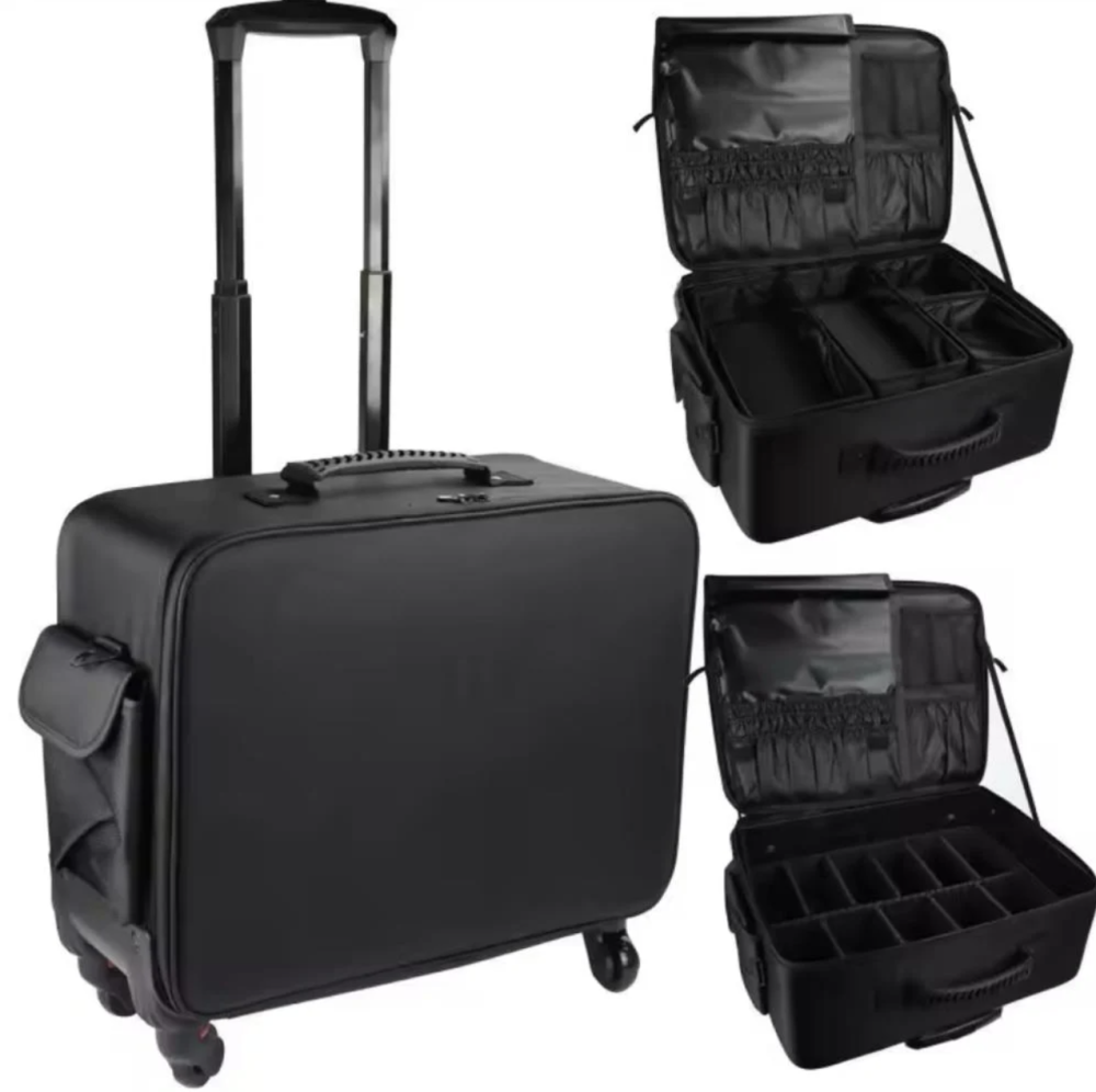 شنطة مكياج مقسمة بالعجلات- لون أسود