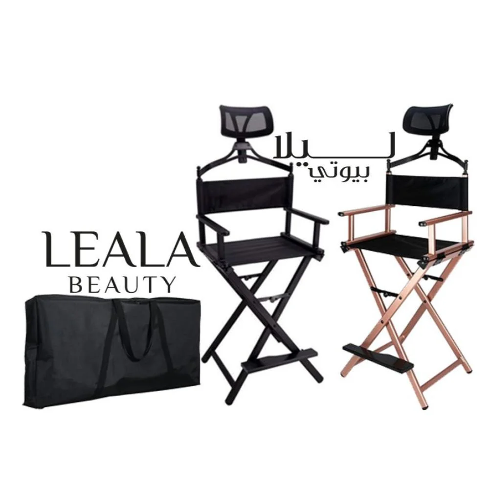 كرسي مكياج من الألومنيوم قابل للطي مع مسند رأس و حقيبة لحمل الكرسي